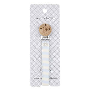 The Aina Pacifier Clip by 1+ in the Family is a practical baby essential designed for everyday use. - Jersey strap with thin misty blue stripes - Nickel-free clip with wooden detail and 1+ logo2 - Nickel-free snap closure - 100% cotton twill tape Fabric: 47% cotton, 46% modal, 7% elastane; 100% cotton twill tape. Care: Machine wash at 30C.
