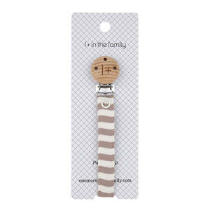 1+ in the Family is a Spanish brand designed by Gemma Mases, creating minimalist baby pieces driven by practicality and comfort. - Jersey strap with thin stripes - Nickel-free clip with wooden detail and 1+ logo2 - Nickel-free snap closure - 100% cotton twill tape Fabric composition: 47% cotton, 46% modal, 7% elastane. Care: Machine wash at 30C.