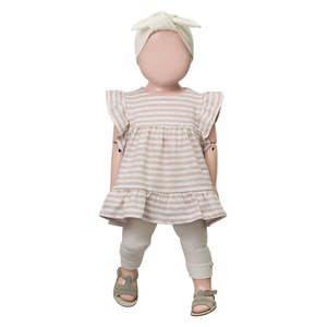 1+ in the Family is a Spanish brand designed by Gemma Mases, creating minimalist baby and child pieces driven by practicality and comfort. - Stripe print dress - Gathered tiered skirt - Ruffles around the arms - Sleeveless 95% Linen, 5% Elastane Machine wash at 30C.