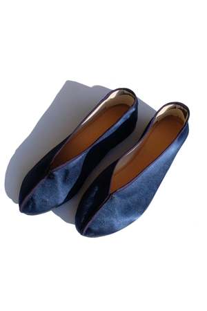 Stunning, richly hued satin fabric slipper with tonal piping. Features a rubber soul making them suitable for indoor and outdoor wear. With 90+ years of experience, Mr. Lee has mastered the art of making theatre shoes. He apprenticed from the master shoemaker who made shoes for Madame Chiang Kai-shek. Working and selling his shoes from a tiny shop, he believes in the quality of his products and has never felt the need to expand beyond his capabilities. US sizing. Half sizes recommended to size up. Made in Taiwan Silk satin upper, rubber soul.