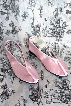 Stunning, richly hued satin fabric slipper with a rubber sole suitable for indoor and outdoor use. With over 40 years of experience, Mr. Lee has mastered the art of making theatre shoes, apprenticing under the master shoemaker who made shoes for Madame Chiang Kai-shek. He continues to craft and sell his shoes from a small shop, focusing on quality over quantity. US sizing. If you're in between sizes we recommend sizing up (i.e., size 8.5 should choose size 9). Made in Taiwan.