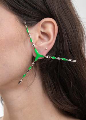 Sculpted metallic silver-tone single earring. Post-stud fastening. One Size 100% BRASS WITH ENAMEL Made in Italy