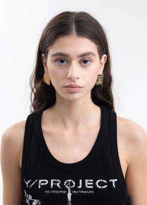 Mini Paris' best single earring in gold, from Y-Project. Constructed by electroplating gold to a brass frame. Features engraved detailing across the plaque's face. Finished with post-stud fastening. One Size 100% Brass Made in Italy *FINAL SALE*