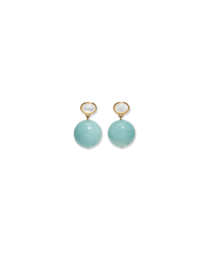 Keep it cool in these chic-for-any-occasion drop earrings. Crafted in gold-plated brass with mother-of-pearl tops and hanging aqua amazonite beads. Materials: Gold-plated brass, mother-of-pearl, amazonite, sterling silver posts. Drop: 1".