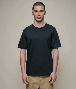 The 2M15 Sturdy Jersey T-Shirt by Merz b. Schwanen is crafted in Germany from sturdy 230g/m jersey fabric on a 1960s circular knitting machine. This classic-fit crew-neck T-shirt features side seams for a natural fit, triangle inserts under the arms, and baseball stitching on the hem and sleeves. Made from 100% organic cotton, it offers timeless style and lasting comfort. - Side seams - Crew neck - Triangle inserts under the arms - Baseball stitching on hem and sleeves - Classic fit - Made in Germany