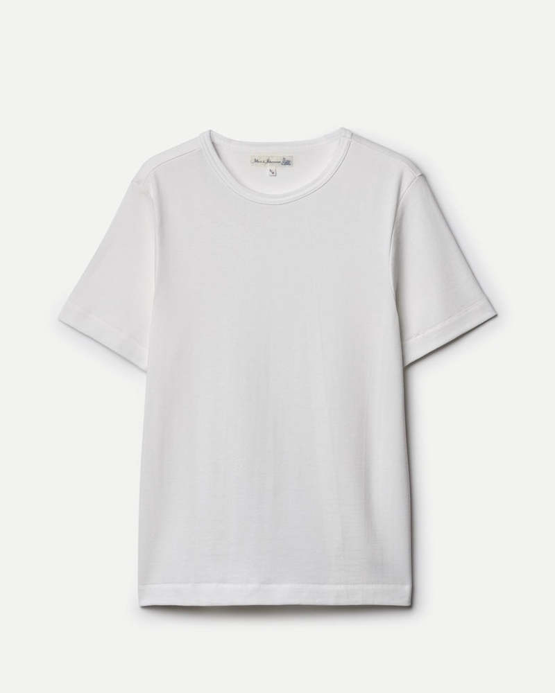 The Merz b. Schwanen 2M15C Cropped Vintage Machine Refined Classic Fit T-Shirt is crafted from 100% organic cotton and features a robust 230g/qm (6.8oz) jersey. Made using a 1960s-era circular knitting machine, it offers durability, while side seams and under-arm inserts provide a tailored cropped fit for added comfort. - 100% organic cotton - Made in Germany