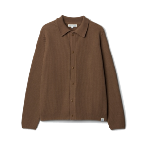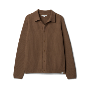 This new Merz b. Schwanen knitted long sleeve shirt is a near perfect layering piece in a relaxed fit. The loose gauge cotton allows breathability and warmth. - Knitted collar - Corozo nut buttons - Swan loop label on the hem - Made in Portugal