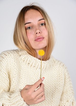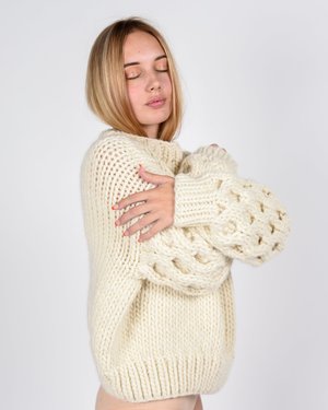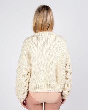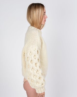 The idea for the brand originated in a knitting caf in New York... I Love Mr. Mittens is the labour of love of Belgian-born Stphanie Caulier. Her year-round collectsion of hand-knitted sweaters, scarfs and hats are made with only the best materials, carefully selected Peruvian cottons and wools, in seasonal custom-dyed palette. The unique yet timeless style of her knits collectsion resulted almost instantly in a mass of followers on social medias, but her ethics still remain uncompromised: all ILMM pieces are responsibly handknitted by peruvian collectsivity artisans. - Loose round neckline - Honeycomb stitch detailing at bell sleeves - Ribbed collar and cuffs - 100% wool, naturally odor-resistant, stain-resistant, and after resting. After wearing, let your wool rest and it will naturally bounce back to its original shape. If needed, remove the pills or bobbles from your sweater with a wool comb - Approx measurements: Chest length: 65 cm / Body length: 52 cm / Sleeve length from sleeve seam: 47 cm