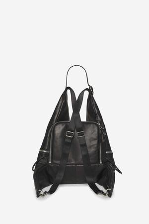 Inspired by Furoshiki, a historic Japanese bag created from a square fabric. Ganges S is made from soft Italian cowhide leather. Can be worn as a backpack or as a tote. Silver trims, padded main pocket can house an ipad air, two front pockets with silver pullers and braided leather lace. One size only. 100% Cowhide leather. Measurements: Height : 43 cm, Depth : 16 cm, Width : 38 cm