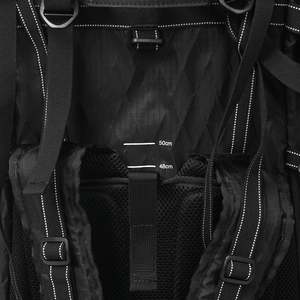 This 40L backpack from and wander uses ECOPAK fabric for the main bodya lowenvironmental impact material made from 100% recycled polyester with a fluorine-free water-repellent finish. It offers 20,000 mm of water pressure resistance and excellent durability. - ECOPAK main body fabric (100% recycled polyester) - 100% polyester - Waterproof - Two-way diagonal front zipper - Drawstring top opening - Padded waist and shoulder straps - Adjustable chest strap - Adjustable torso length for proper weight distribution - Three small Cordura pouches attached by branded carabiners - Removable top flap pouch - Two drawstring side mesh pockets - Reflective and wander logo2 - Made in China Volume: 40L.