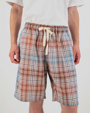 The Mindless Boogie Shorts from Howlin' are a slightly longer short cut from an exclusive premium Japanese yarn-dyed cotton twill. This garment features a rich check pattern with deep, woven-in colors. The fabric has a soft yet structured feel, ideal for layering or wearing on its own across seasons. Each garment is produced in small batches with close attention to detail in the Howlin' atelier. DETAILS + FIT - 100% cotton - Adjustable drawstring waist - Relaxed fit - Two side pockets - Made in Belgium