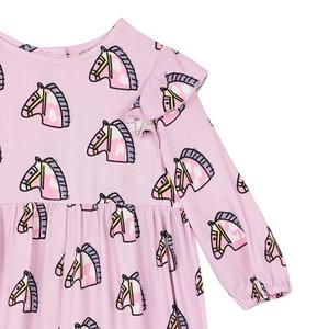 Stella McCartney launched her first children's collectsion in 2010 capturing the spirit and energy of the contemporary child in an eco and animal friendly collectsion. - All-over baby horse head print - Ruffle along the shoulders - Snap closure down the back and between the legs - Elasticized leg openings - Long sleeves with elasticized cuffs 100% Viscose Machine wash at 30C. 601471 SPK06
