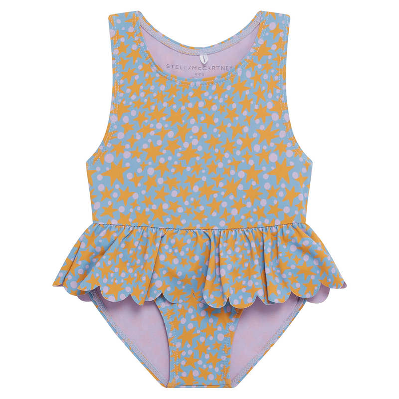 Stella McCartney launched her first children's collectsion in 2010, capturing the spirit and energy of the contemporary child in an eco and animal-friendly collectsion. One-piece swimsuit with all-over stars and dots print. Ruffle around the waist with scalloped edges. Sleeveless. Made from recycled materials with a sun-safe UPF 50 coating. Comes with Stella McCartney Kids waterproof bag. 78% Polyamide, 22% Elastane. Machine wash gentle at 30C. Do not bleach, tumble dry, iron, or dry clean. TYC069 Z3663 606MC Type: Swimwear