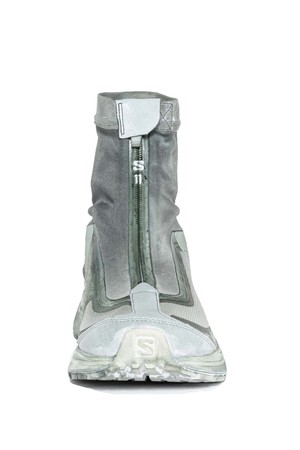 The contemporary arm of the German-born and Barcelona-based designer's brand, 11 by Boris Bidjan Saberi's experimental basics fuse the avant-garde cuts and fabrics of the main line with the street and skate influences that underpin its darkly urban aesthetic as seen with the Alga Dye Salomon Edition Bamba 2 High. Boris Bidjan Saberi Shoes are polished season after season, paying accurate attention to every detail to reach the highest standards obtainable. Low top trainer with high top cover. Highly reflective 11 logo2 on tongue and back. Front zip on sock. Lace ups. Ortholite insoles. Salomon engineered. Black Blue natural dye. Colour: Alga Dye