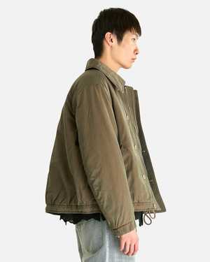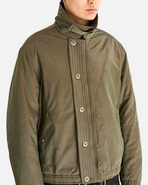 This insulated jacket is crafted from a Japanese cotton and nylon twill with an iridescent effect. It features a storm flap collar, button placket with concealed front zip closure, flap pockets with snap button closure on the front, button tab cuffs, drawstrings at the hem, a full quilted lining, an interior patch pocket, an engraved metal logo2 tab on the back collar, and corozo button detail. Product SKU: M2261ATS Model measurements - Relaxed fit - Model is 6'2" and wears size 48 Product features - Storm flap collar - Button placket - Concealed front zip closure - Flap pockets with snap button closure on front - Button tab cuffs - Drawstrings at hem - Full quilted lining - Interior patch pocket - Engraved metal logo2 tab on back collar - Corozo button detail Product composition - 53% cotton, 47% nylon - Fill: 100% polyester - Lining: 51% viscose, 49% cotton - Made in Bulgaria.