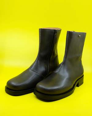 Produced in an aniline dyed Italian calf leather, our Camion Boot features a Vibram outsole, leather Kilger midsole, a metal Our Legacy rivet and a YKK side zip closure with a leather pull tab. Calf leather