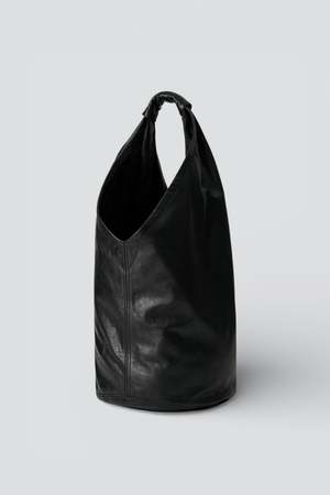 The Fofo Drip Bag from Our Legacy is produced in Italian bull leather. It features a large central pocket, a shoulder strap, and a reinforced carry handle. Material: Italian bull leather.