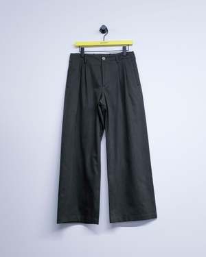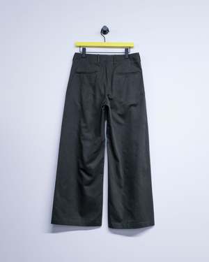 The Bridge Chino in Antique Mudd Coated Sateen is produced in a Japanese cotton sateen fabric with a pigment-coated finish that provides a muted sheen. The coating is designed to wash out over time, gradually revealing the natural cotton beneath and creating an authentic, weathered look. The Bridge Chino has a wide, relaxed leg and features a double pleated front, darting for shape, a corozo button closure, YKK zip fly, two front welt pockets and two back welt pockets, and a clean silhouette with no side seam.