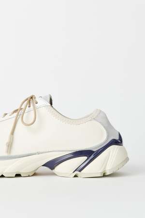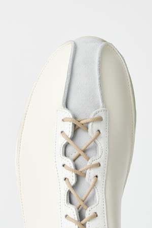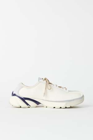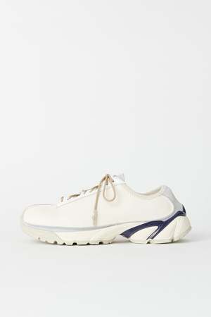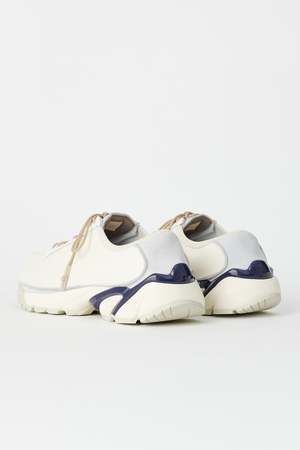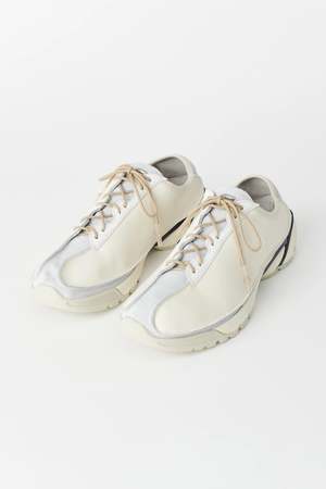 Our Legacy Klove shoe in Off White Leather. Produced in suede leather with a contrast panel construction, Klove has a generous fit and features rounded laces with rubber coated tips, a Vibram sole and a metal OUR LEGACY rivet on the tongue. The Klove sneakers have a generous wide fit, we would recommend going down one size if you are between sizes. Please note that sizing is mens EU. We recommend going down one size for womens EU equivalent. Custom label 0 SS23 Custom label 0 SS23 Purchase price 170 Season ["SS23"] Final sale Final Sale (The item is non-returnable) Poizon size scale US