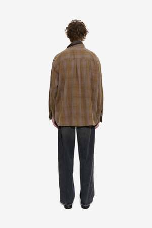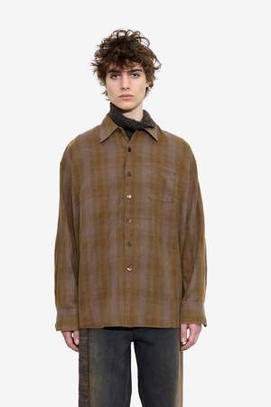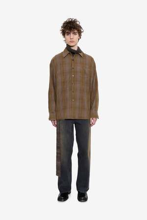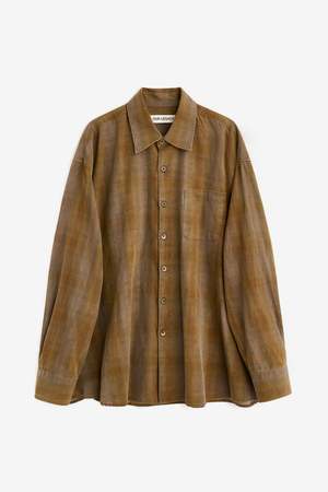 The Borrowed Shirt by Our Legacy is a men's long sleeve shirt in a Dakota Flannel Check brown colorway. Composition: 100% Cotton. Season: SS26. Collection type: Main.