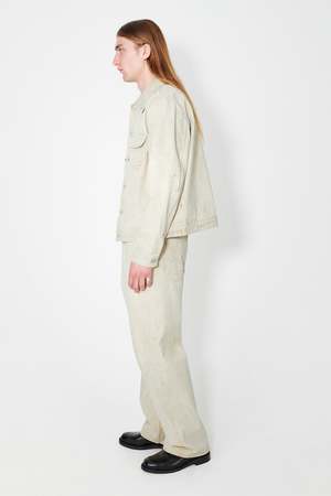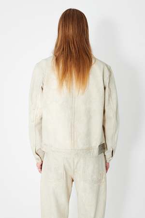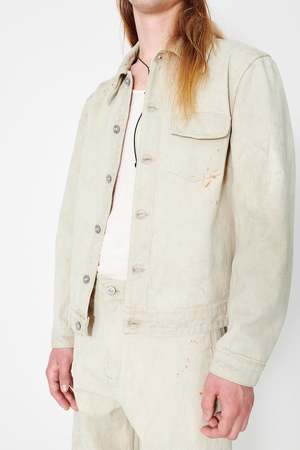 Our Rebirth Jacket in Attic Wash. Produced in a vintage stain washed Italian denim, the mens Rebirth Jacket has a boxy fit and features a single chest pocket with flap closure, metal buttons. an Our Legacy embossed patch and a metal bean rivet on the back of the collar. This garment is manufactured using carefully sourced material with a unique treatment process that will give each garment an individual shade and appearance. This technique could result in some color bleed onto lighter garments or surfaces. The garment shall be shaped by its wearer and naturally distress over time to finish the design process. Italian denim 100% Cotton Vintage stain wash Each jacket has unique appearance Single chest pocket with flap pocket Metal buttons Straight hem Our Legacy embossed patch Metal bean rivet on back of collar M2235 RA Size Chest Shoulders Length Sleeve 44 54.5 45.4 63.1 64.6 46 56.5 46.6 64.3 65.6 48 58.5 47.8 65.5 66.6 50 60.5 49 66.7 67.6 52 62.5 50.2 67.9 68.6 54 64.5 52.4 69.1 69.6 All measurements are taken across the garment in cm while laid flat. Our Rebirth Jacket is true to size with a boxy fit. The model is 187 cm tall and is wearing a size 48.