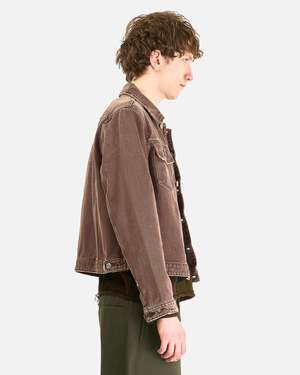 This Origin Jacket from Our Legacy is crafted from a pigment-dyed, non-stretch denim and features a spread collar, button front closure, flap chest pockets, buttoned cuffs, and adjustable button tabs at the back waist. Fading and distressed detailing complete the look. Type: Men's jacket Product SKU: M2265OC Fit: - Regular fit, boxy - Model is 6'1" and wears size 48 Features: - Spread collar - Button front closure - Buttoned cuffs - Chest flap pockets - Adjustable button tabs on back waist - Fading and distressed detail Composition: - 100% cotton - Made in Portugal