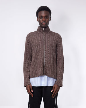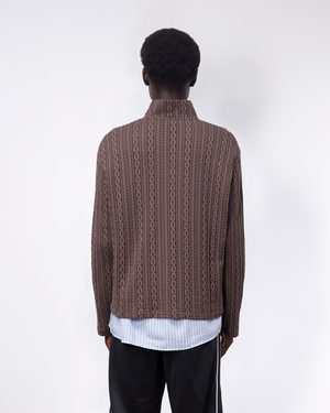 Do you guys remember those weird S shapes that everyone drew as kids? The pattern on this jacket totally reminds me of that. Its a good mid-weight, too, which makes it more versatile than a sexually frustrated father-of-two at Mardi Gras. Portuguese jersey 86% Cotton, 14% Polyamide Jacquard cable pattern Lampo two way zip Funnel neck collar Flatlock seams Straight hem Short boxy fit Model is 184cm and wears a size 48 More from Our Legacy.