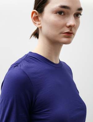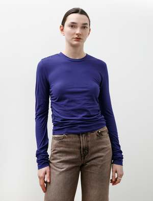 An everyday staple with a vibrant edge, this top from Our Legacy is a perfect way to add some colour to a simple outfit. Made of Japanese high-twist cotton jersey in a deep blue colour, it is lightweight with a flexible feel. The long-sleeve silhouette is slim against the body with ruched seam detailing at the waist and sleeves for a gathered appearance. Complete with elongated sleeves and a round neckline, this top offers a unique take on a classic staple.