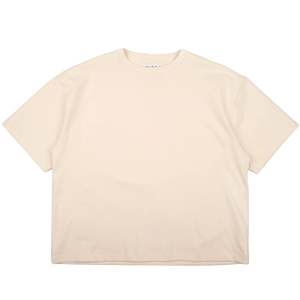 The Strong Tee in natural by Naked & Famous is crafted from 11oz heavyweight cotton jersey. This tee features a dense, durable fabric with a structured hand that resists stretching. The vintage-style binder collar maintains its shape, while the roomy fit sits just below the waistband. Spun, knit, and sewn entirely in Canada. 100% cotton.