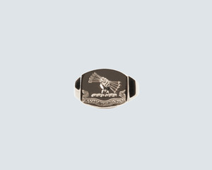 Hand engraved signet ring depicting a hand holding a fistful of arrows above a banner that reads "Vive et Vivas"- Live and Let Live. Available in 14k gold and sterling silver. This piece is handmade to order. Please allow 7 business days before shipping.