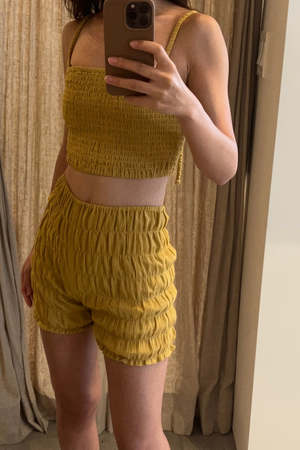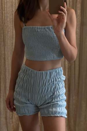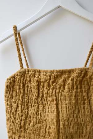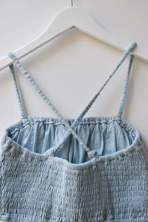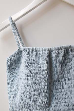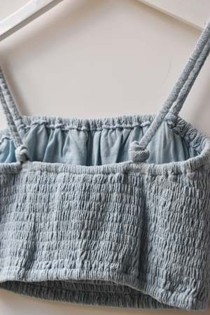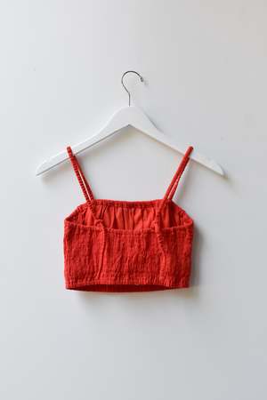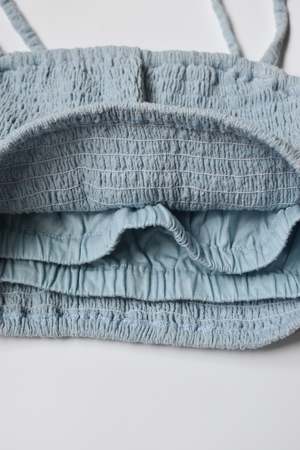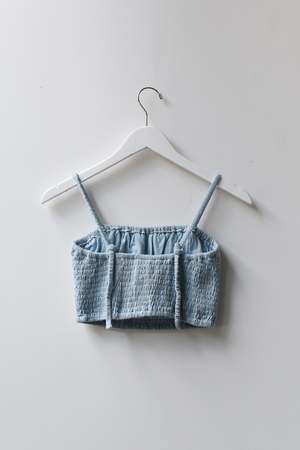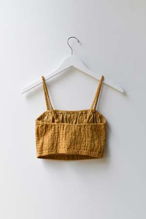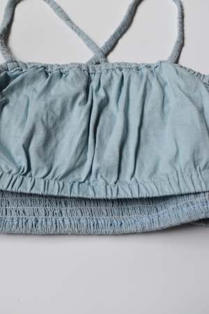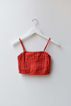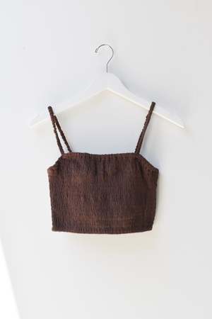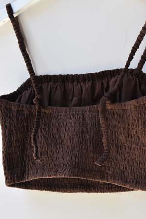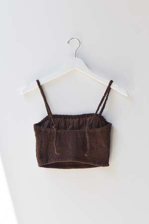 Double layered stretchy bra top with adjustable tie straps and elastic underband. Can be worn as a top, undergarment, or for layering. - Double layered - Adjustable tie straps - Can be tied criss cross. Details: - Light Blue and Black: 100% Organic Cotton - Tomato, Tan, Brown: 55% Cotton, 45% Linen - OEKO-TEX STANDARD 100 - Hand wash cold - Made in Indonesia
