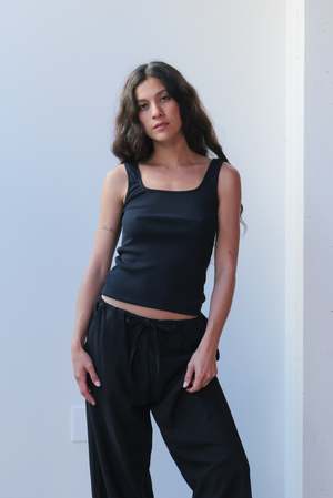 Sleeveless top in ribbed cotton with square neck. Available in: Black Fog Plantation Details 100% Cotton Hand wash cold Made in Indonesia Sizing Model is 5'4" (163cm) and wearing size XS.