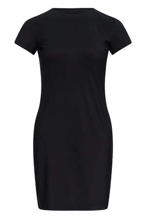 This black mini dress from MM6 Maison Margiela features a form-fitting silhouette and classic T-shirt style, offering a sleek and simple look perfect for effortless everyday wear. Care: Dry clean only. Wash by hand inside out at ambient temperature. Color: Black. Details: 73% Elastane, 27% Elastane. Fit: Take your true size.