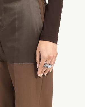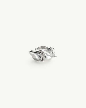 Forged in fluidity. This polished brass ring features a molten silhouette, where peaks and folds echo metal in motion sculpture elevated to wearable form. Silver toned brass. Size S ring size - 5 Size M ring size - 6.5 Size L ring size - 7 Made in Italy.