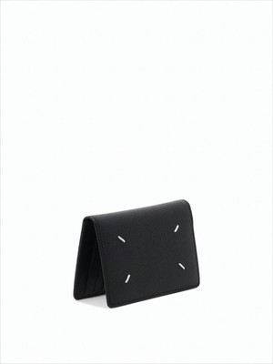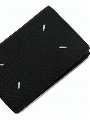 This bifold card wallet from Maison Margiela epitomizes modern elegance, crafted from premium textured calf leather. Adorned with four signature white stitches, it showcases a minimalist aesthetic, while the interior offers multiple card slots for practical organization. Made in Italy, this accessory is designed for the contemporary individual who values sophistication in every detail. Composition: 100% calf leather Dimensions: Rectangular bifold design Color: Black Origin: Made in Italy Style/Model: S55UI0203P4745T8013