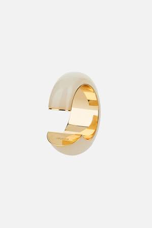 Women > Jewelry > Necklaces Asymmetrical cream-colored cuff bracelet with a resin exterior and a gold-plated brass interior. Composition: 100% Copper.