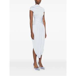 Women > Clothing > Dresses Blue dress with pleated detail, a draped design, concealed back zip fastening, and cap sleeves.