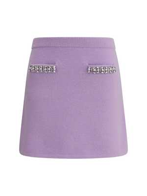 Self-Portrait's knit miniskirt is made from a stretch viscose blend and enhanced by elegant jewel embellishments at the front. Featuring an elastic waistband for a comfortable fit, it has two front slit pockets and an unlined design that enhances its lightness and contemporary character. Composition: 47% Viscose, 33% Nylon, 13% Alpaca Vicugna Pacos, 2% Elastane, 5% Wool.