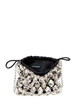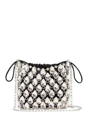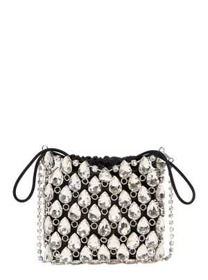 Women > Bags > Totes Handbag "Silver Crystal Chainmail Mini Bag" with crystal details. The color is metallic. It features a top zip closure and a metal chain that allows it to be worn on the shoulder or crossbody. The back has a smooth surface without additional details. Made of metallic fabric. Dimensions: 20 cm x 15 cm x 5 cm.