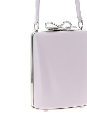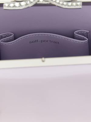 'Lilac leather mini bow' leather handbag with metal details, fixed handle, snap closure with rhinestone metal bow detail, and front logo2 print. Composition: 100% leather.