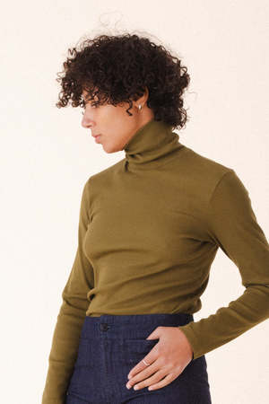 Our staple organic cotton thick rib is like a lightweight sweater. Incredibly stretchy, it skims the body and holds its shape. Elegant fitted or worn slightly loose. The Core Layer is rooted in the creation of wardrobe staples you can wear year after year. Softened and dyed in saturated tones. Always hang to dry to retain color vibrancy. - Turtleneck pullover - Thick rib textile, stretchy and molds to the body - Wear it fitted or size up for relaxed fit - Exaggerated long-sleeves - 95% Organic Cotton / 5% Spandex rib knit in LA - Made in Seattle, U.S.A.