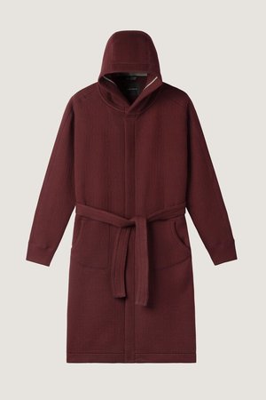 Wings + Horns signature boxing-inspired robe, made from a custom triple-layer fabric with a soft quilted interior. Warm yet light, Cabin Fleece offers a lush balance of structure and comfort. Signature sweatshirt-influenced details include front patch pockets, premium rib cuffs and an oversize hood. - Signature three-layer fabric - Flatlock stitching - 1x1 rib-bound front patch pockets - Dual-layer rib underarm gusset - 1x1 rib cuffs - Signature herringbone taped collar seam - Bartack reinforcements - Top-stitched waist belt - Dual belt loops - Oversize hood - Made in Canada