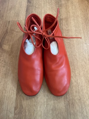Gorgeous rust red leather flats from Blush - Tulipe style. I adore these but I accidentally sized down when I should have sized up and I can't return them. Excellent condition overall, only worn a few times as indicated by the condition on the soles of the shoes, some wear from walking on gravel. Sold out online!