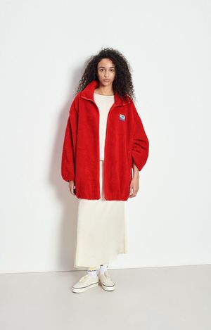 American Vintage Hoktown long zip up shearling polar fleece jacket in Love Love. 100% recycled polyester. Style code: HOK17AE26.
