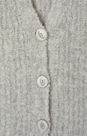 The Zolly mid-length sleeveless cardigan from American Vintage is made from premium Italian boucl yarn, which is soft and warm. Its highly textured knit creates a unique boucl effect and relief, adding volume and style to any outfit. With its buttoned V-neck and oversized fit, it can be worn over a shirt or as a second layer for a contemporary, eye-catching look. Details - Sleeveless cardigan - V-neck - Button closure - Italian boucl yarn - Soft and warm knit - Oversized, loose fit, take your usual size - Type: Sweater Vest