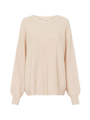 Perfect your winter style with the American Vintage Wopy Sweater in Madeleine. Constructed from an Acrylic Wool blend this ultra comfy sweater has an oversized fit and features batwing long sleeves, ribbed cuffs and a ribbed rounded neckline. You can't go wrong with this wardrobe winter addition. ----FABRIC OR COMPOSITION The American Vintage Wopy Sweater in Madeleine is made from 42% Acrylic 25% Polyamide 22% Wool 6% Elastane 5% Alpaca SIZE AND FIT The American Vintage Wopy Sweater in Madeleine fits true to size. Measurements taken from Size S Neck drop: 5cm / 2inch Sleeve length: 62cm / 24.5inch Back length: 58cm / 23inch Model is wearing a Size S, Caitlin is 179cm / 5' 10.5" Bust 81cm / 32in /// Waist 64cm / 25in /// Hips 89cm / 35in