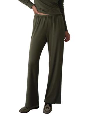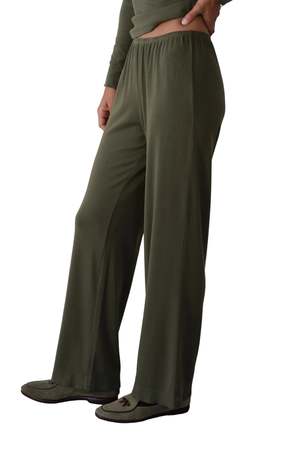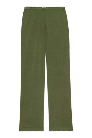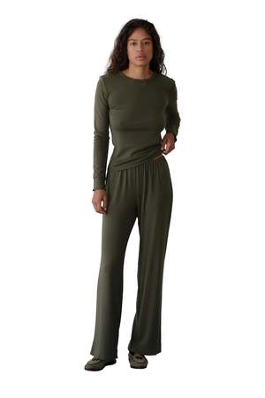 The Baby Rib Scallop Pant by Donni. is their softest pant yet, featuring a buttery-soft feel, straight-leg silhouette, and scalloped trim. Designed with an elastic waist, cropped length, and subtle baby rib texture, it is easy to style and effortless to wear. Made in Los Angeles. 47% Modal 47% Cotton 6% Spandex.