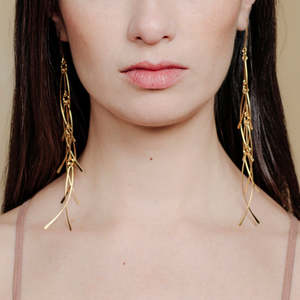 These come in gold or rhodium electroplate w/ sterling silver posts. Earrings are approximately 16cm. info@paricijewellery.com Hand made in Toronto.