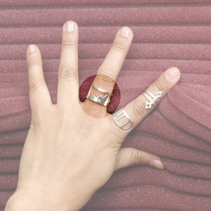 The Mountain Ring by PAR ICI comes in solid sterling silver and 22k gold electroplate. Silver stamped .925. Slightly adjustable in size. Hand made in Toronto.