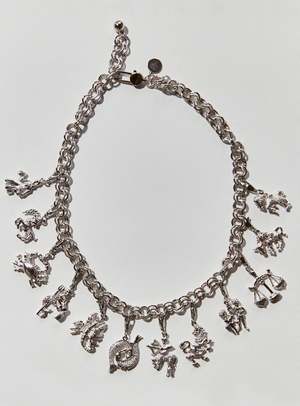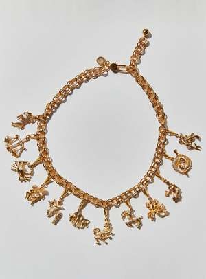 This necklace comes with all 12 astrology signs on individual charm clasps so you can wear as many or as few signs as you like. Clip the clasp where ever you like on the chain adjusting the length to suit you. See our other product listing to buy individual charms. Comes with a long lobster clasp on the chain. Length: 53.5cm (approx 21") adjustable so you can wear it tighter. Weight: 92g 22K Gold Plated or Rhodium Electroplated Rhodium is a rare, silvery-white, hard metal. It is a member of the platinum group...sterling silver is often rhodium-plated for tarnish resistance. Handmade in Toronto, ON *Please note that this item is not available in-store and will ship out directly from the designer. If the piece is not readily available by the designer, production time to make it is approximately 4-8 weeks. Please feel free to send us an email to see if it its available to ship right away or not!* When you shop with Victoire, you're supporting independent Canadian designers from across the country. Designers Eve and Alynne bonded over a shared obsession with vintage jewellery at parties and in elevators at their university co-op building. They started out collectsing and selling vintage jewellery in Toronto, New York and LA, and eventually pieces from their collectsion found their way to the pages of international Vogues, W Magazine and Elle, among others. Very naturally, the amassed vintage helped inspire the first collectsion Eve and Alynne designed together. They create captivating jewelry that walks the line between simplicity and boldness, balancing contemporary design with hints of the past throughout their collectsion.